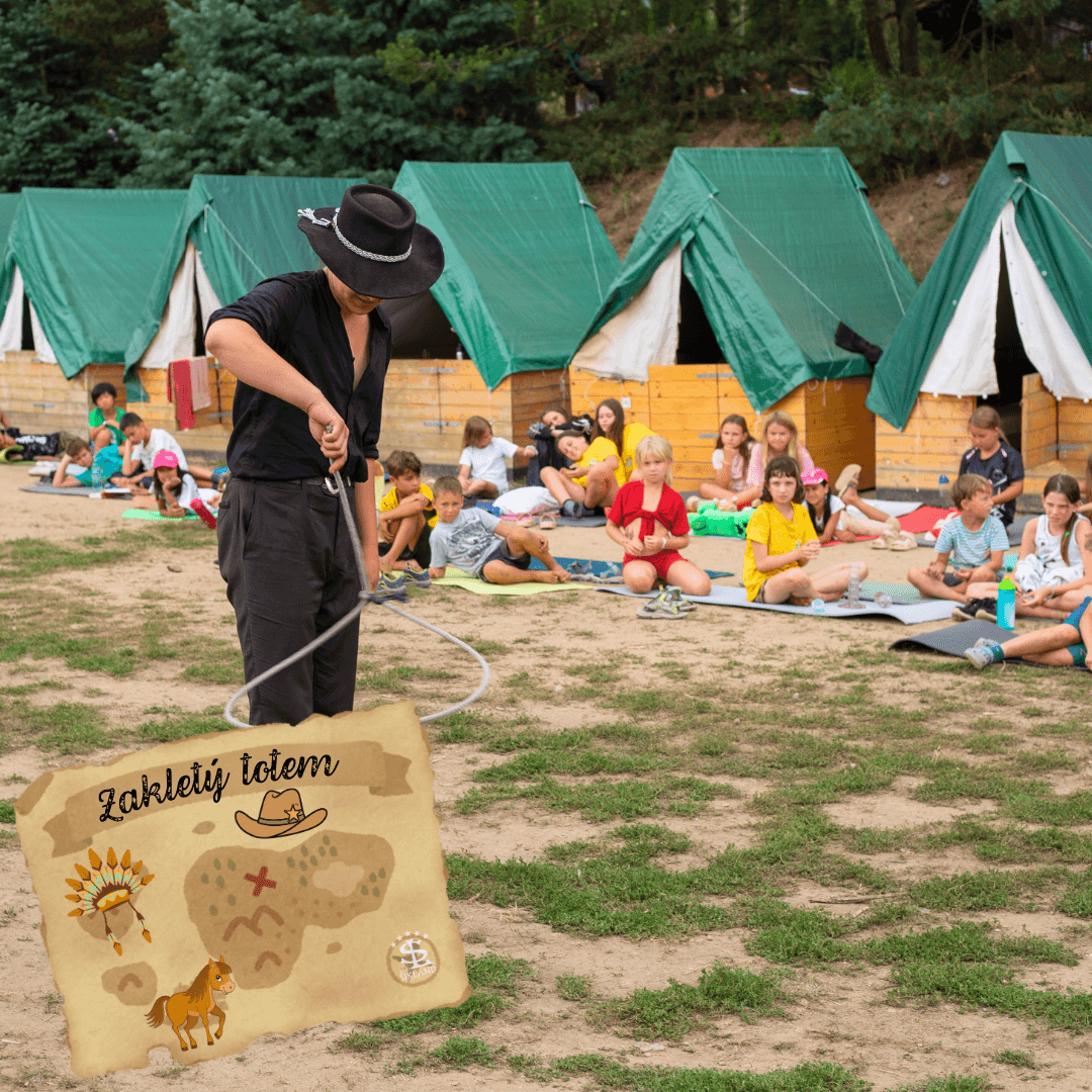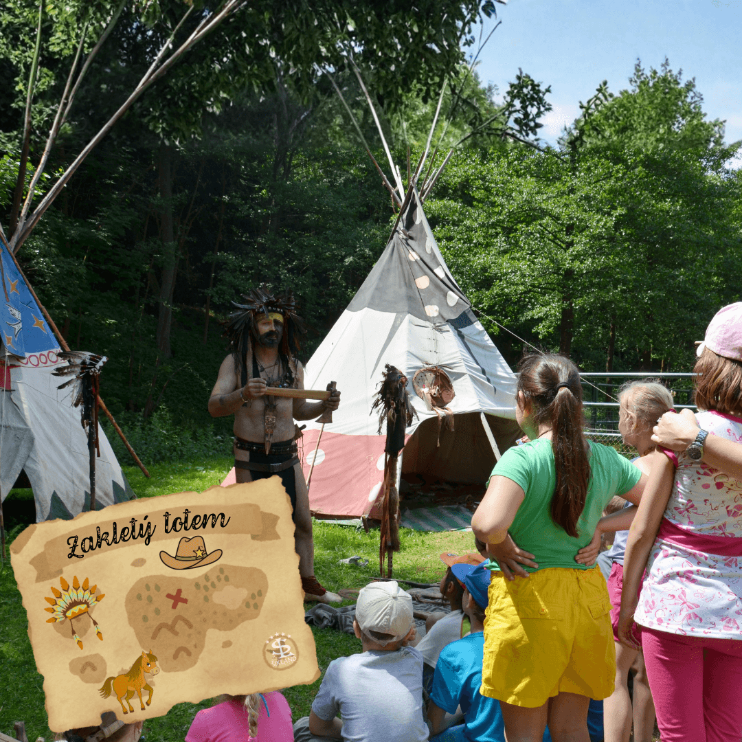 Program tábora je plný tajemství a dobrodružství. Děti se zapojí do napínavého příběhu o starodávném zakletém totemu, který čeká na své zachránce. Společně budou hledat stopy, luštit hádanky a překonávat překážky, aby odhalily tajemství a zlomily kletbu. Čekají je soutěže, akce i dobrodružství v kulisách Divokého západu, zapojí se do aktivit s herci Šiklova mlýna a navštíví strašidelný zámek Draxmoor.