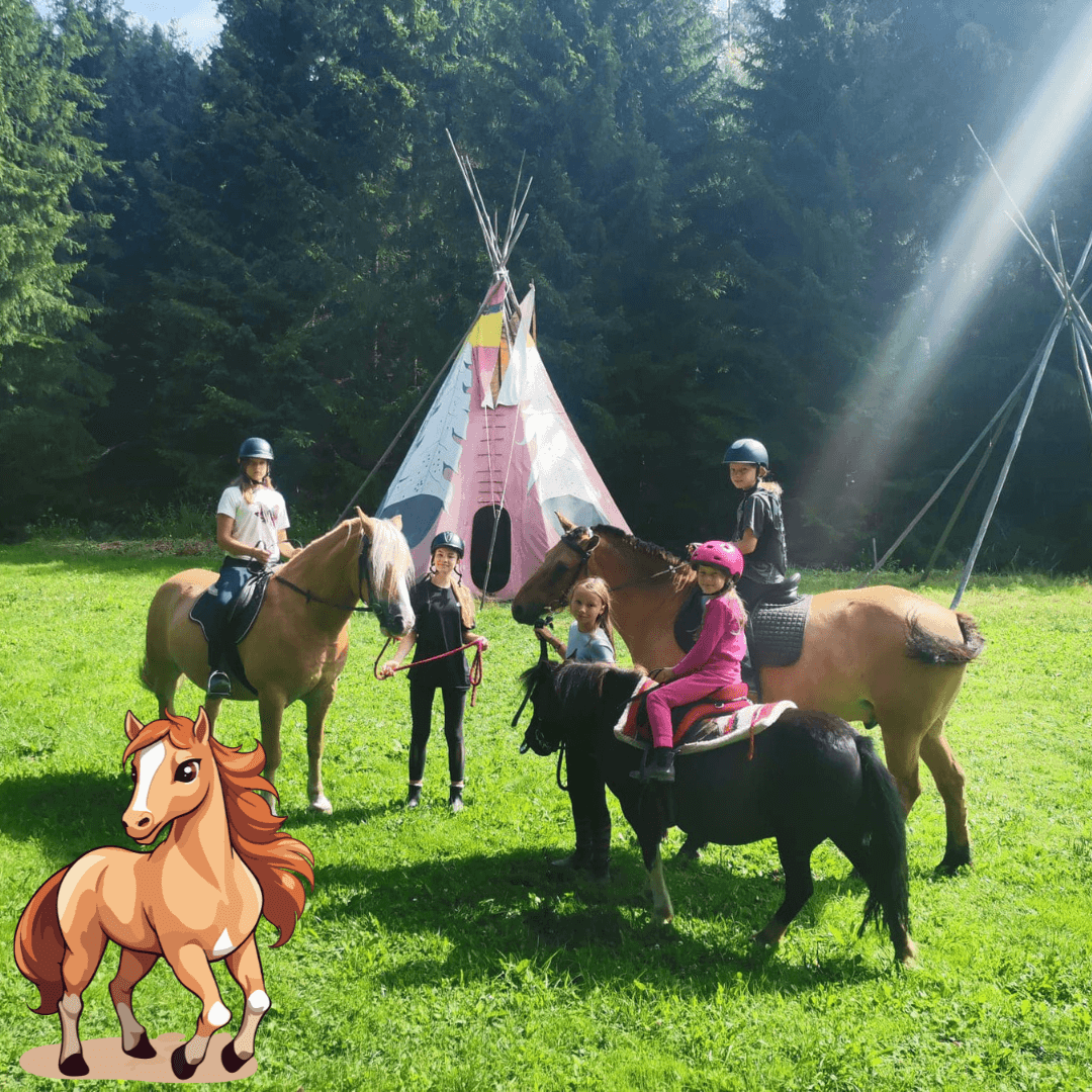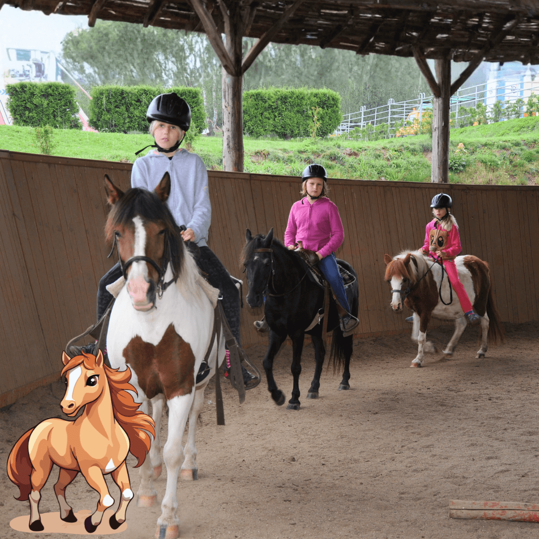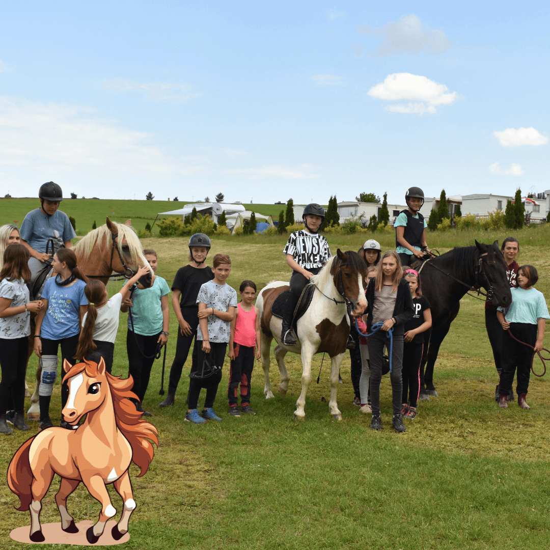 Naučí se, jak o koně pečovat, ale také posadí do sedel. Jezdectví trénují v hale, kruhové jízdárně i ve volné přírodě. Po celou dubu tábora mají děti k dispozici profesionální prostředí plně vybaveného jezdeckého klubu, které je vhodné pro malé i velké jezdce, zkušené i úplné začátečníky. Disponujeme bohatým výběrem koní od nejmenšího minipony až po urostlého fríského koně.